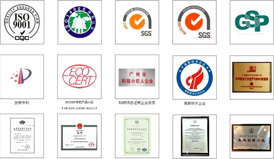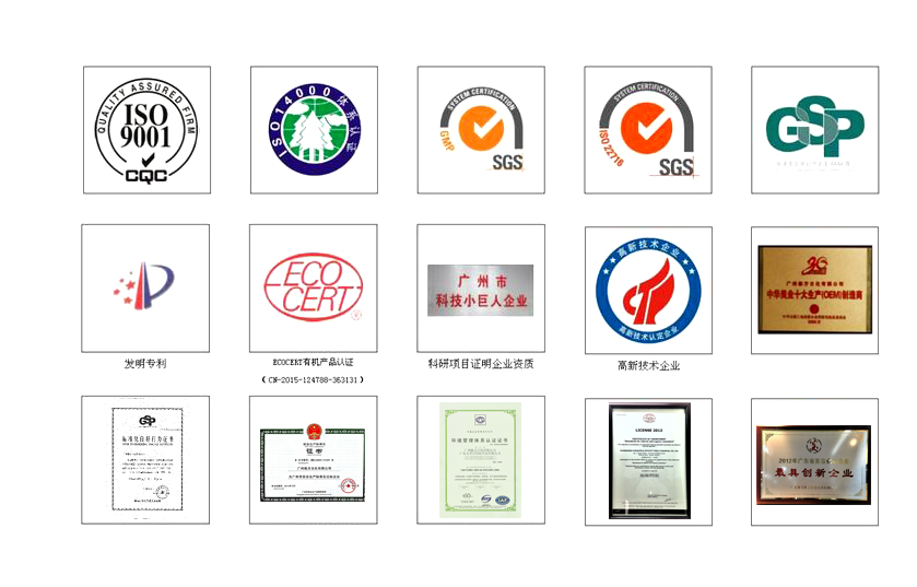 ●公司于2007年通過SGS公司的認(rèn)證,并獲得GMPC證書● ●公司于2009年榮獲廣州市高新技術(shù)企業(yè)協(xié)會會員單位 ●公司于2011年獲得廣州市花都食品藥物質(zhì)量管理協(xié)會第三屆名譽理事 ●公司于2011年獲得國家頒發(fā)的“高新技術(shù)企業(yè)”稱號 ●公司于2012年獲得廣州市花都區(qū)安全生產(chǎn)管理技術(shù)研究協(xié)會理事單位 ●公司于2012年通過法國ECOCERT(天然及有機化妝品認(rèn)證)的認(rèn)證 ●公司于2012年榮批廣州市花都區(qū)科信局頒發(fā)的“綠色化妝品工程技術(shù)中心”項目 ●公司于2012年獲得廣州市花都區(qū)知識產(chǎn)權(quán)試點企業(yè)稱號 ●公司于2012年成功簽訂廣東省科學(xué)技術(shù)廳4名科技特派委員 ●公司于2013年獲得廣州市花都區(qū)科學(xué)技術(shù)獎三等獎 ●公司于2013年通過ISO14001(環(huán)境管理體系認(rèn)證證書),并獲得ISO0001證書 ●公司于2013年獲得2012年廣東省美容化妝品行業(yè)最具創(chuàng)新企業(yè) ●公司于2014年成功獲得科技小巨人資質(zhì) ●公司于2014年通過國家AAAA標(biāo)準(zhǔn)化良好行為認(rèn)證,并獲得標(biāo)準(zhǔn)化良好行為證書 ●公司于2015年成立省級工程技術(shù)中心,獲批成立院士專家企業(yè)工作站 ●公司于2016年分析檢測中心獲國家CNAS認(rèn)證 ●公司于2017年成功獲得中國化妝品“十佳制造商”稱號,連續(xù)五年獲得“有機工廠”認(rèn)證 ●公司于2018年成功獲得中國化妝品供應(yīng)鏈百強企業(yè)稱號 ●公司于2018年成功通過兩化融合管理評定,并獲得證書 ●公司于第24屆中國美容博覽會獲得“中國化妝品優(yōu)秀供應(yīng)商” ●公司于2019年榮獲全球美妝供應(yīng)鏈權(quán)威大獎——2019 COSMETECH OEM/ODM獎 |