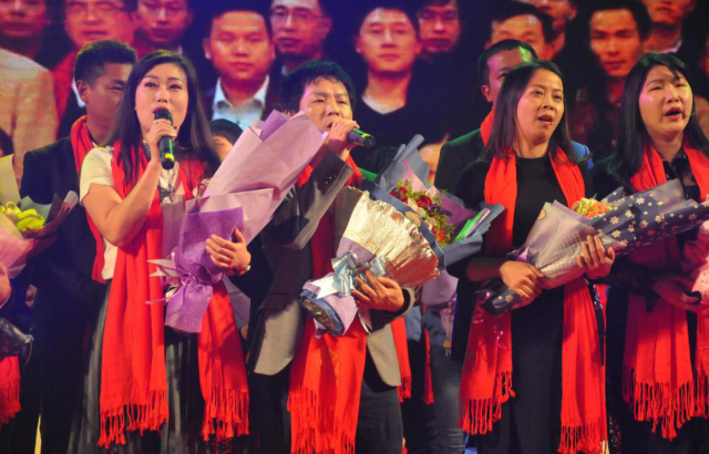 唐總帶領(lǐng)十年老員工深情演繹《光陰的故事》,感動(dòng)全場(chǎng)。