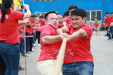 第一輪:拔河比賽。此次拔河比賽共設(shè)6個(gè)隊(duì)組,采取“兩兩分組PK淘汰賽制”。每組隊(duì)員16人,其中男隊(duì)員8名,女隊(duì)員8名。一聲哨響,拔河比賽正式開始。登場(chǎng)的雙方隊(duì)員握緊繩子、身體后傾,牟足了勁兒地拽,臉漲得通紅,場(chǎng)面異常激烈。