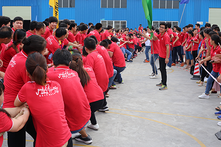 第二輪:協(xié)作接力賽,分鏈接加速、袋鼠跳、平衡乒乓球過障礙和無(wú)敵風(fēng)火輪4個(gè)接力小環(huán)節(jié)。一聲令下,參賽員工魚貫而出。場(chǎng)上,你追我趕、奮力拼搏;場(chǎng)下,加油聲、吶喊聲此起彼伏。這項(xiàng)活動(dòng)不只讓員工們的身心得到放松,還令他們的團(tuán)隊(duì)協(xié)作力、集體榮譽(yù)感得到前所未有的提高。