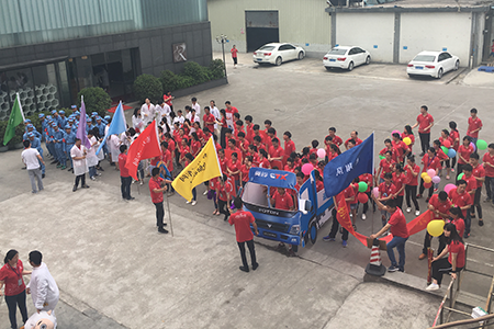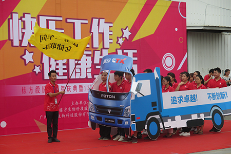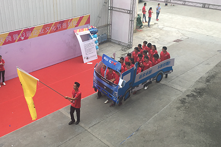 緊接著,一大幫來(lái)自“棟方二車間、倉(cāng)儲(chǔ)聯(lián)隊(duì)”的老司機(jī)們,駕駛著“棟方奧鈴號(hào)運(yùn)輸車”穩(wěn)穩(wěn)向前,喊出他們“追求卓越,不斷創(chuàng)新”的決心。