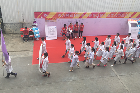 最后出場(chǎng)的是“飛翔隊(duì)”,伴隨著輕快的生日歌節(jié)奏,“喜洋洋”帶領(lǐng)著一大波“廠草廠花”獻(xiàn)禮棟方,祝福棟方股份14周歲“生日快樂”。