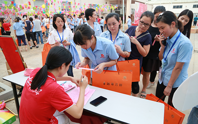 頒獎(jiǎng)結(jié)束后,是大家翹首以盼的月餅派發(fā)環(huán)節(jié),憑票兌換,秩序井然,現(xiàn)場一片溫情、歡喜洋溢。