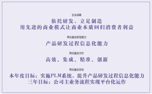 以提升產(chǎn)品研發(fā)過(guò)程信息化能力、主業(yè)務(wù)流程三年內(nèi)實(shí)現(xiàn)平臺(tái)化運(yùn)作為目標(biāo),在ERP系統(tǒng)和PLM系統(tǒng)集成環(huán)境下,搭建產(chǎn)品研發(fā)過(guò)程信息化管理平臺(tái),從物料、技術(shù)、產(chǎn)品、業(yè)務(wù)流程、數(shù)據(jù)查詢等方面進(jìn)行綜合平衡和優(yōu)化管理,切實(shí)提高產(chǎn)品質(zhì)量、加快產(chǎn)品研發(fā)速度和創(chuàng)新、降低成本,實(shí)現(xiàn)對(duì)整個(gè)產(chǎn)品供應(yīng)鏈的有效管理。