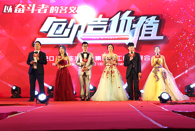 棟方股份集團(tuán)倪總、邱副總分別登臺作工作匯報(bào),帶領(lǐng)大家回顧了2017年公司的蛻變、發(fā)展之路,并向全體家人送上了新春祝福。