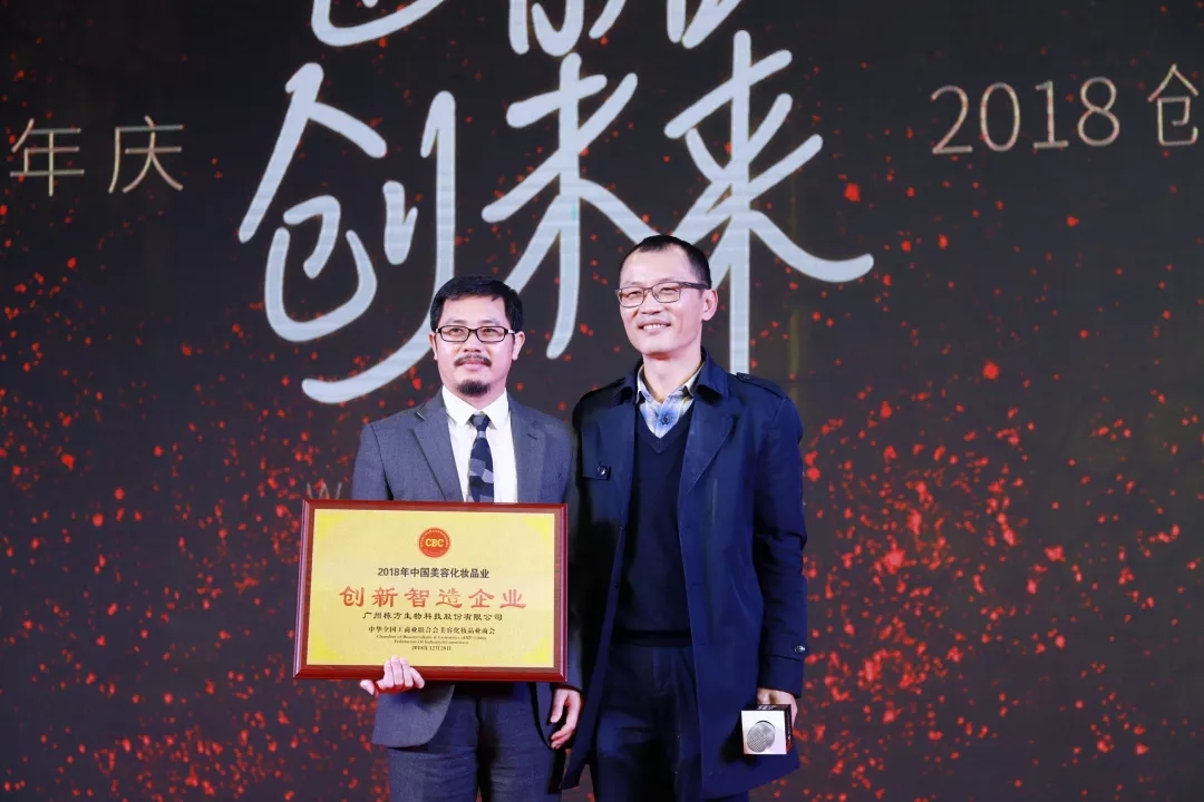 隨后,青島金王總經(jīng)理唐風杰先生,中國美妝總經(jīng)理桂紹元先生、中華全國工商聯(lián)合會美容化妝品業(yè)商會蔡永忠副會長先后上臺致辭,對棟方股份集團近幾年的卓著成就給予高度肯定,對行業(yè)發(fā)展發(fā)表了頗有見地的分享。蔡永忠副會長代表中華全國工商聯(lián)合會美容化妝品業(yè)商會給棟方股份集團20周年帶來了一份驚喜的生日禮物,為棟方股份頒發(fā)了“創(chuàng)新智造企業(yè)”大獎,回顧棟方股份2018年的累累碩果,這一榮譽,實至名歸。