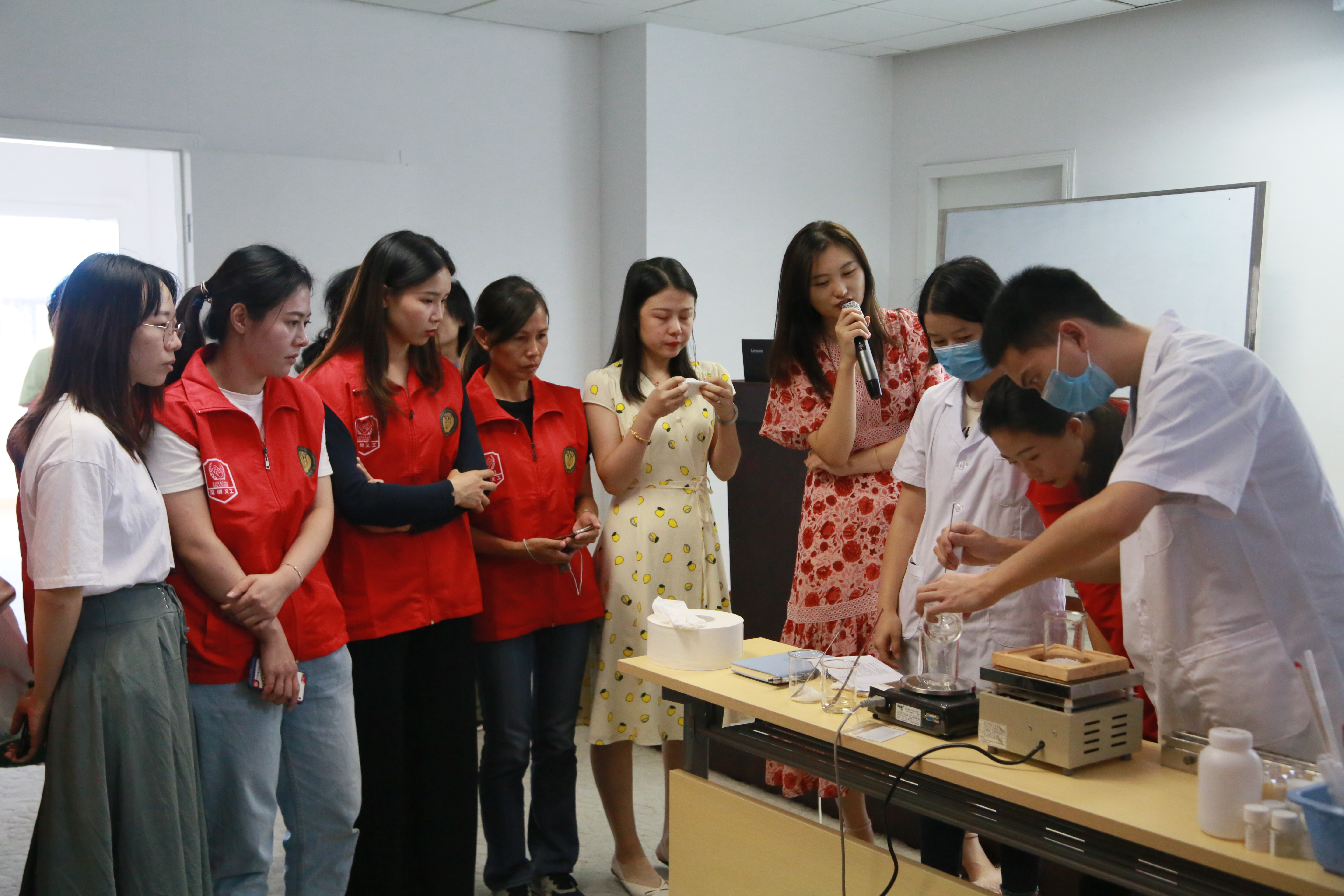 參觀完生產(chǎn)車間后,在棟方股份技術(shù)研究中心工程師的帶領(lǐng)下,體察團來到了開放實驗室,和工程師一起體驗口紅的制作過程,并在工程師的科普下了解口紅生產(chǎn)制作的時間,知道一款口紅從立項研發(fā)到正式生產(chǎn)大約需要6~12個月時間,其中需要歷經(jīng)大概80多項測試環(huán)節(jié),通過人群體驗測試產(chǎn)品使用感和功效性,通過耐寒、耐熱、折斷、涂抹等測試來把控產(chǎn)品穩(wěn)定性,通過毒理等測試以確保產(chǎn)品安全性,從而確保產(chǎn)品品質(zhì)最佳、效果最優(yōu)。